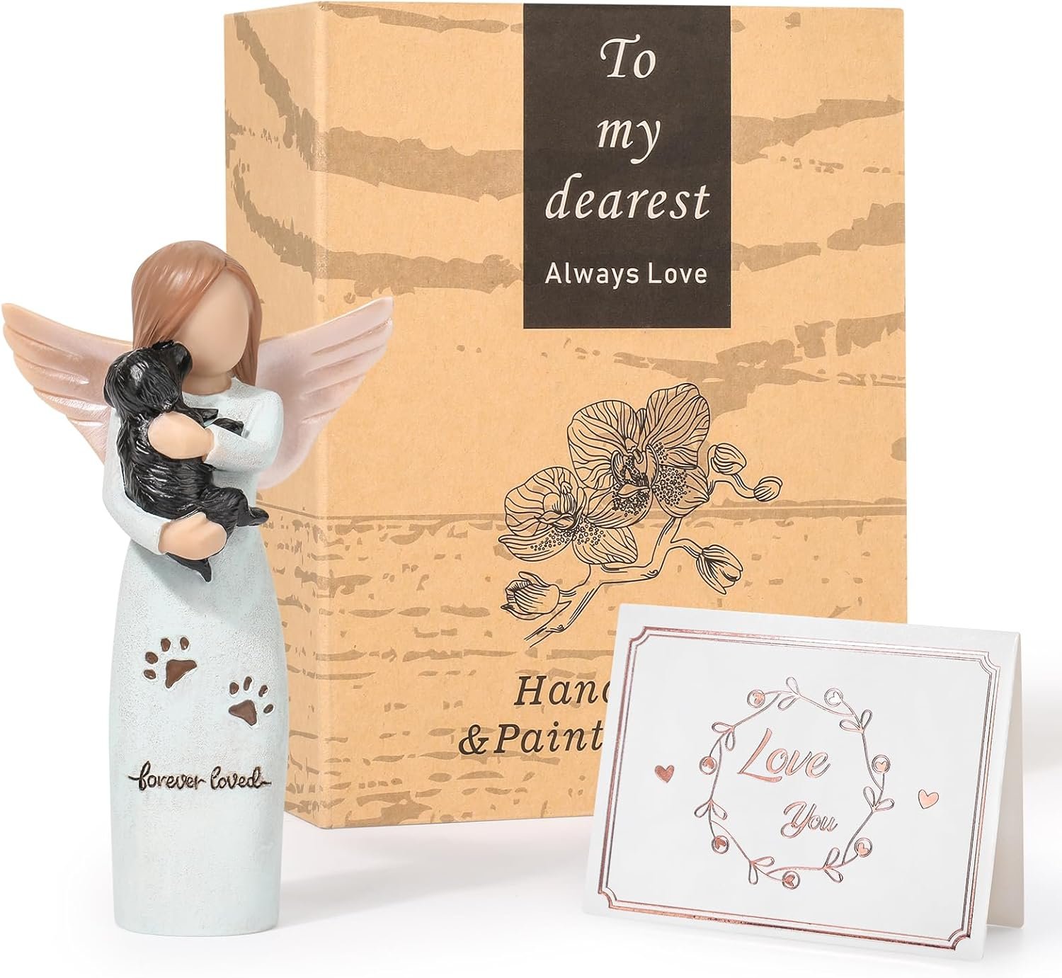 Dog Figurines Home Decor Gifts: More than a mere ornament, our Angelic Girl Embracing Dog sculpture radiates warmth and compassion. Perfectly suited for home décor, this piece transforms any space into a haven of tranquility. Its heartfelt depiction makes it an ideal gift, expressing love and care to friends and family. Whether as a thoughtful gesture during challenging times or a symbol of everlasting friendship, this sculpture adds a touch of emotional resonance to any occasion.